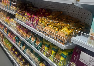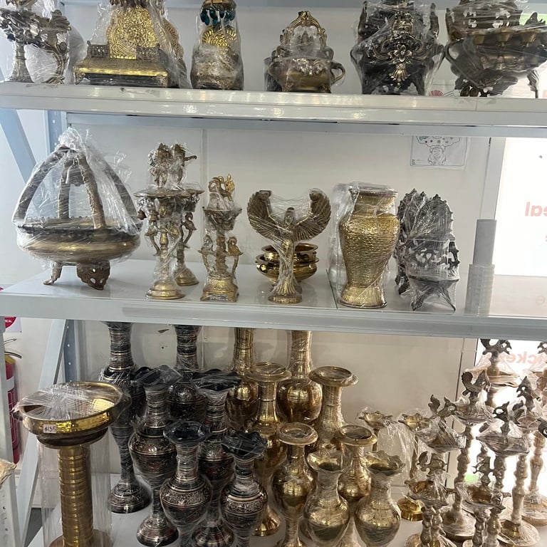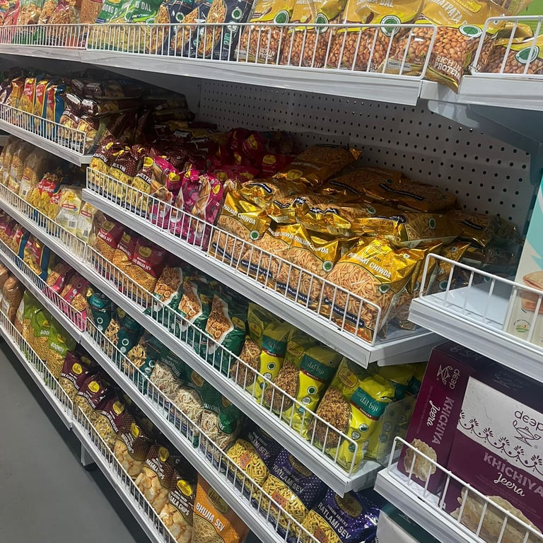 Asian groceries: rice, oil, sauces, chips, drinks, dal, spices, snacks, frozen foods, pooja items, personal care, gift items, brass, decor, silver jewellery, essentials